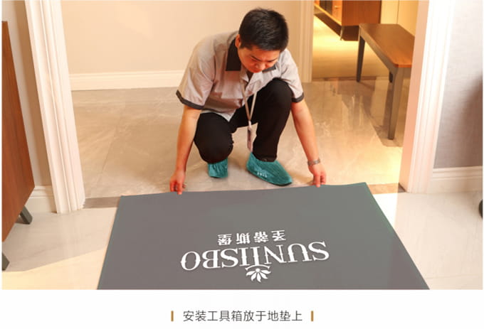 1、征得客戶同意后在客戶指定地點(diǎn)進(jìn)行產(chǎn)品安裝,安裝過程中將提前準(zhǔn)備好的小地毯/地墊放置于地上,安裝工具箱放于地墊上,不要在家具或地板上亂放,以免散落面板或地面上造成磨損。
