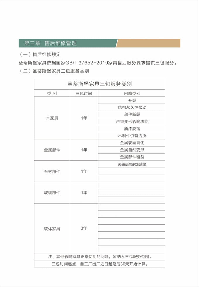 產(chǎn)品處理完畢后必須一站式通檢,指導(dǎo)客戶使用,并將服務(wù)過程中產(chǎn)生的垃圾隨手帶走,家具維修完畢后,應(yīng)用毛巾將家具擦拭一遍,確保產(chǎn)品清潔。